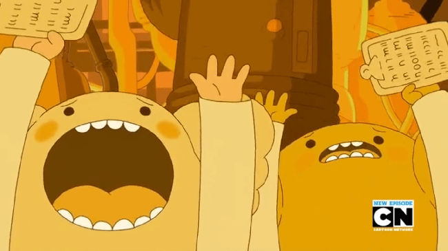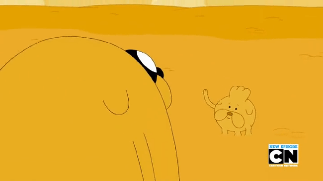 What I love about “Everything’s Jake” is that this isn’t some random existential plot foisted onto Jake’s happy-go-lucky character. Jake is an epicurean guy through and through; he’s used not one, but TWO cosmic wishes on foodstuffs, for corn’s sake. If anything, this story arc is the perfect development of Jake’s character, as it explores how he will react when he realizes he can’t simply consume to his body’s furthermost desire. Jake’s consumerism is becoming a metaphor for our consumerism and egocentrism, and since we’re looking at three Jake-centric episodes later on in the season, including a season finale entitled “Jermaine” (!), the name of Jake’s brother, we’ll probably see these ideas play out further in the near future.