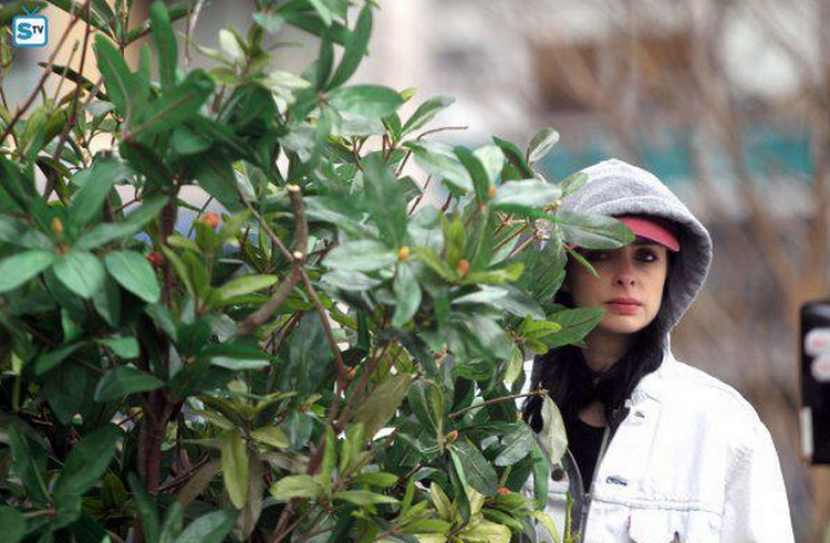 That one may have been taken during filming. Perhaps Jessica is tailing Cage or someone else? That’s an awfully large bush to just hang out next to.